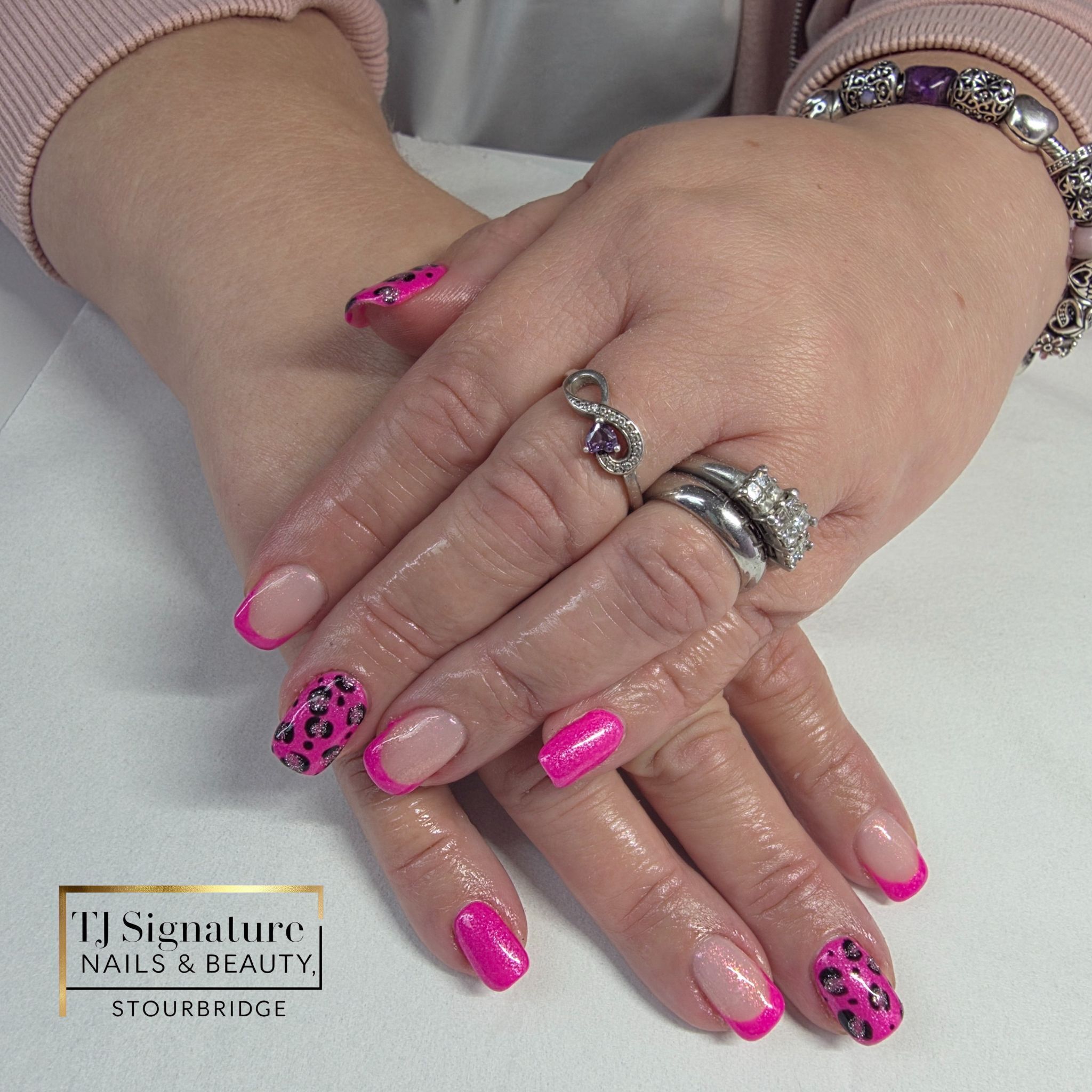 ✨ Bold, bright & beautiful! ✨ A mix of hot-pink sparkle, leopard accents, and a sleek French finish – the perfect blend of fun and fierce.